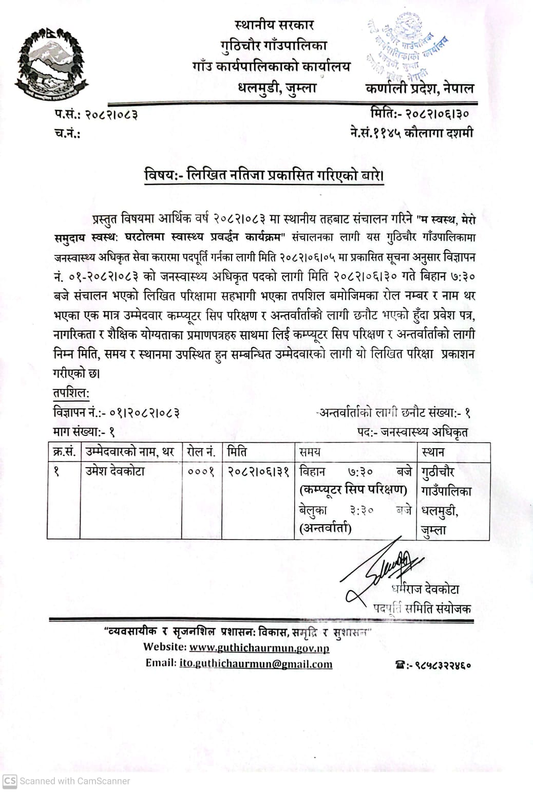 गुठिचौर गाउँपालिका नेपालको संविधानको धारा २९५ उपधारा ३ बमोजिम कायम भएका गाउँपालिका तथा नगरपालिकाहरु मध्येको एक स्थानीय तह हो। कर्णाली प्रदेश अन्तर्गत जुम्ला जिल्लामा पर्ने गुठिचौर गाउँपालिका साविकका देपालगाउँ , गोठिचौर र गर्ज्याङ्गकोट गरी ३ गा.वि.स. हरु मिलेर बनेको छ। करिब ४२७ वर्ग कि.मि. क्षेत्रफलमा रहेको यस गुठिचौर गाउँपालिकाको जनसंख्या २०७८ सालको जनगणना अनुसार जम्मा जनसंख्या १०९२२ रहेको छ। जसमध्ये महिलाको संख्या ५५३८ र पुरुषको संख्या ५३८४ रहेको छ। वडागत रुपमा हर्ने हो भने वडा नं.