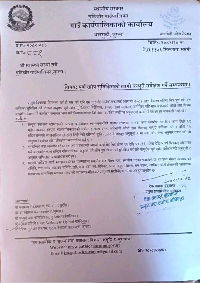पूर्ण खोप सुनिश्र्चितको लागी घरधुरी सर्वेक्षण गर्ने सम्वन्धमा ।