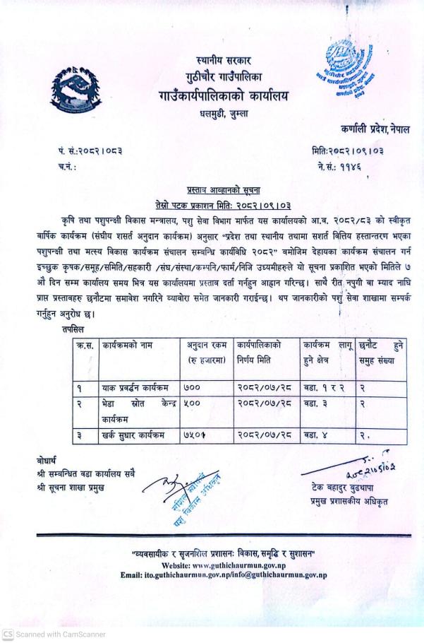 » प्रस्ताव आव्हानको सुचना तेस्रो पटक प्रकासन मितिः २०८२।०९।०३