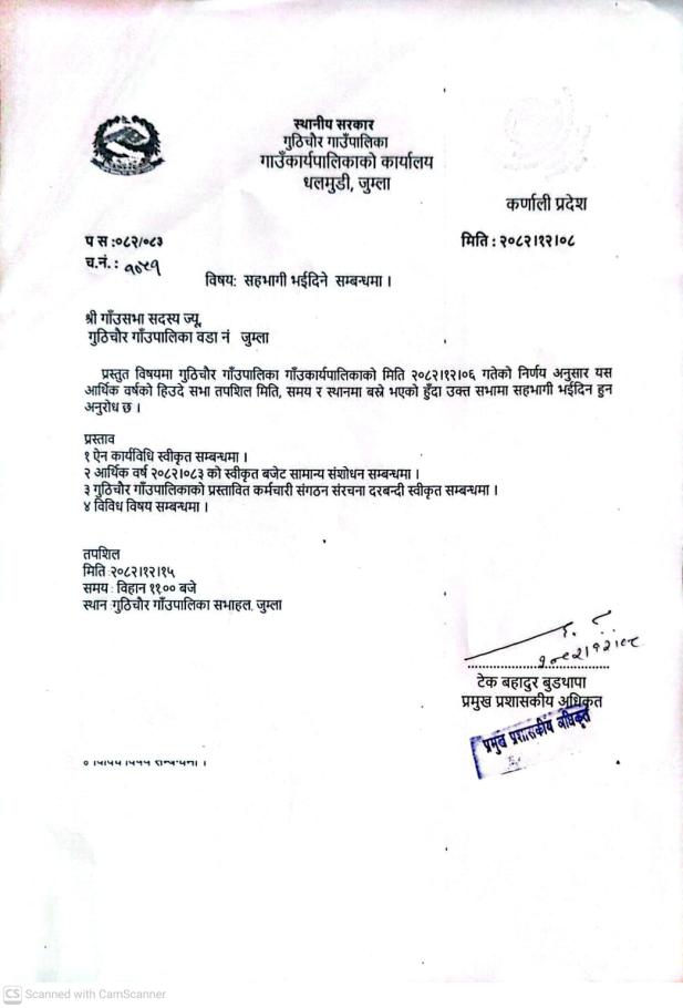 गुठिचौर गाउँपालिकाको आ .व. २०८२।८३ को बजेट