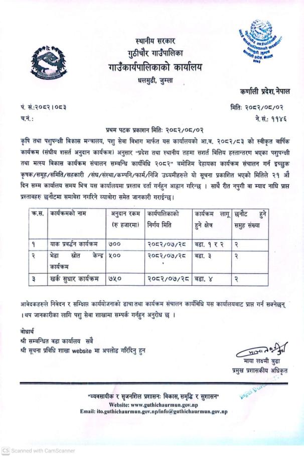 गुठिचौर गाउँपालिकाकाो नागरिक वडा पत्र