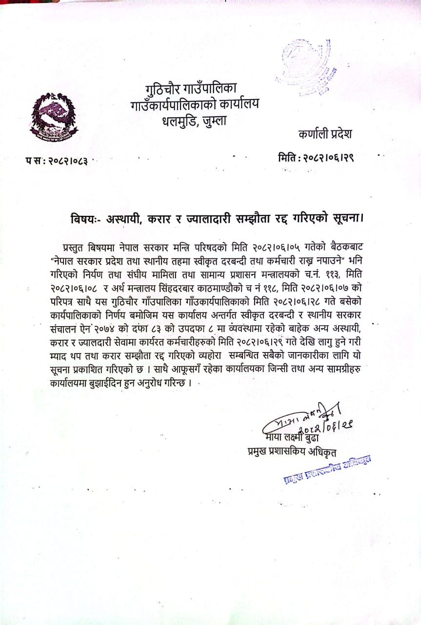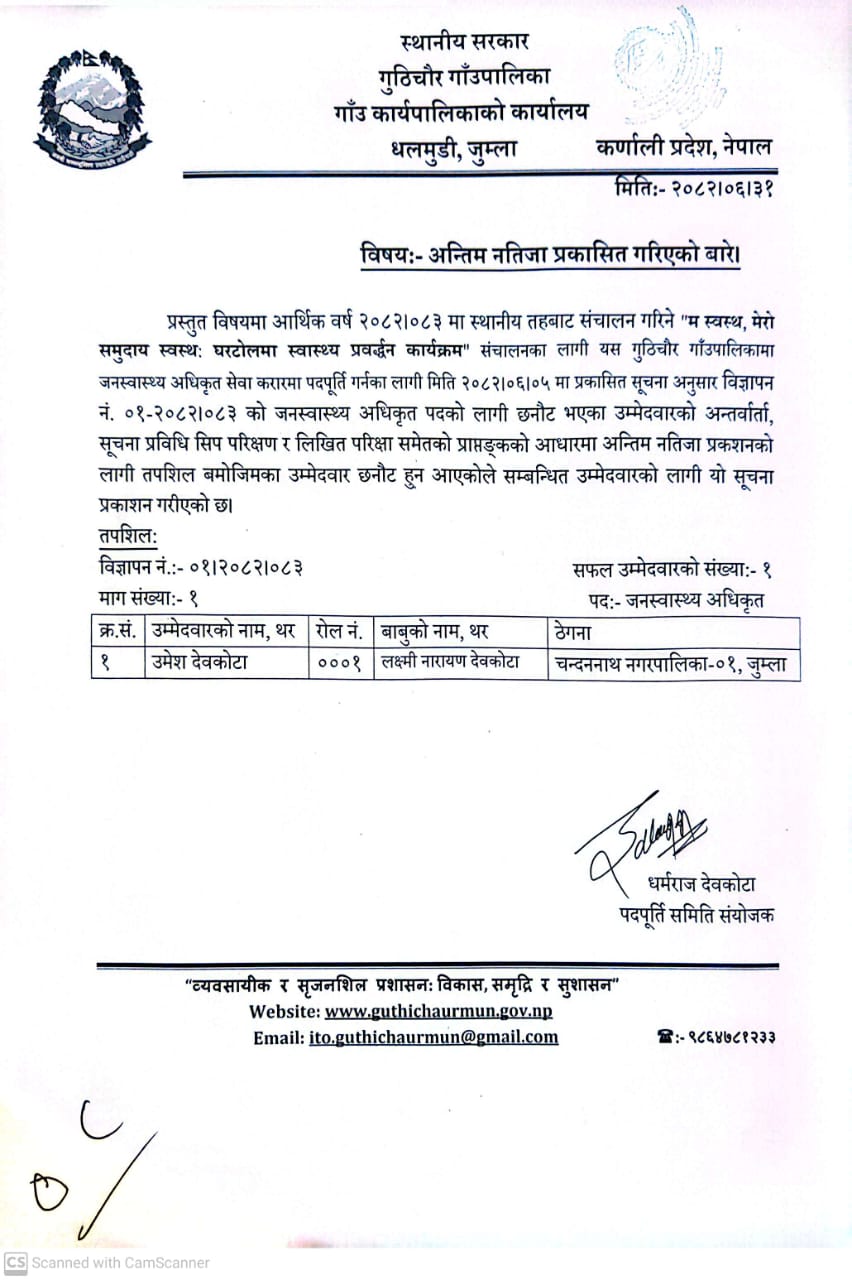 गुठिचौर गाउँपालिका नेपालको संविधानको धारा २९५ उपधारा ३ बमोजिम कायम भएका गाउँपालिका तथा नगरपालिकाहरु मध्येको एक स्थानीय तह हो। कर्णाली प्रदेश अन्तर्गत जुम्ला जिल्लामा पर्ने गुठिचौर गाउँपालिका साविकका देपालगाउँ , गोठिचौर र गर्ज्याङ्गकोट गरी ३ गा.वि.स. हरु मिलेर बनेको छ। करिब ४२७ वर्ग कि.मि. क्षेत्रफलमा रहेको यस गुठिचौर गाउँपालिकाको जनसंख्या २०७८ सालको जनगणना अनुसार जम्मा जनसंख्या १०९२२ रहेको छ। जसमध्ये महिलाको संख्या ५५३८ र पुरुषको संख्या ५३८४ रहेको छ। वडागत रुपमा हर्ने हो भने वडा नं.