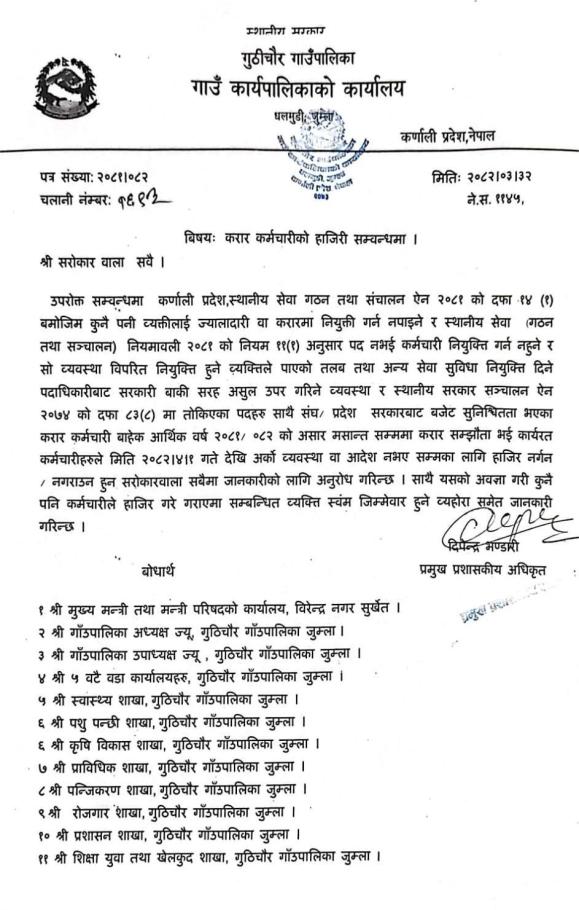 » करार कर्मचारीको हाजिरी सम्वन्धमा |