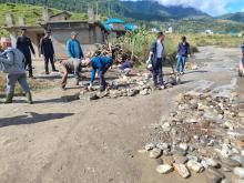 १० औं संविधान दिवसको अवसरमा गुठिचौर गाउँपालिकाका कर्मचारी र जन प्रतिनिधिहरु द्धारा झारज्वला देखि दानसाँघु सम्म बाटो सरसफाई गर्दा कहिद गरिएको तस्विर ।