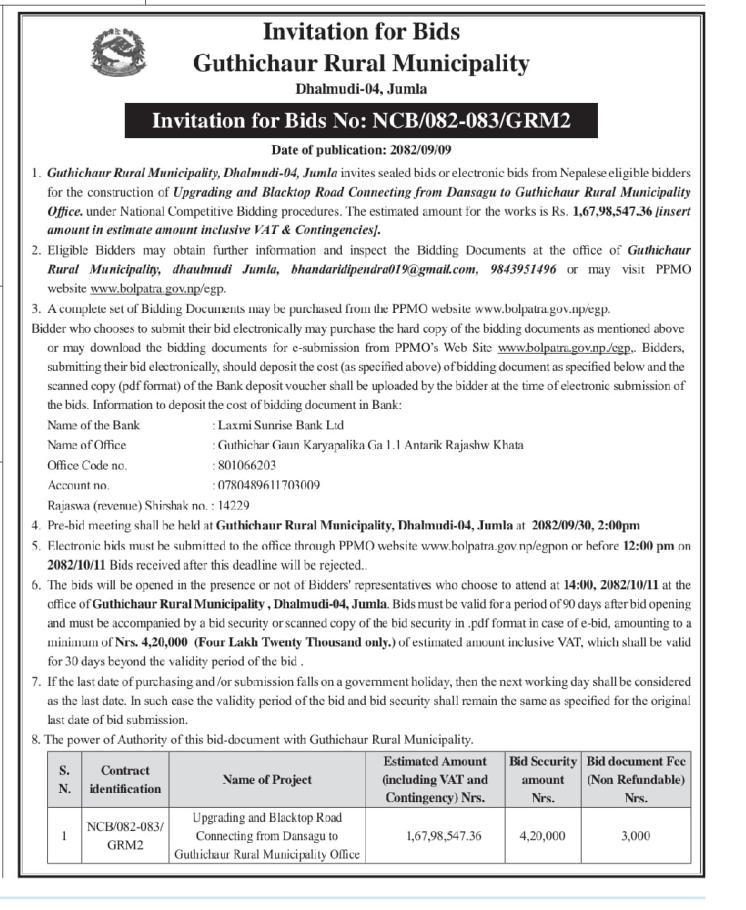 Invitation for Bids No: NCB/082-083/GRMP